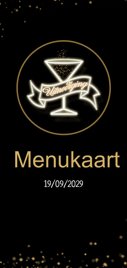 Hippe menukaart met cocktailglazen en goudkleurige accenten. (5917)