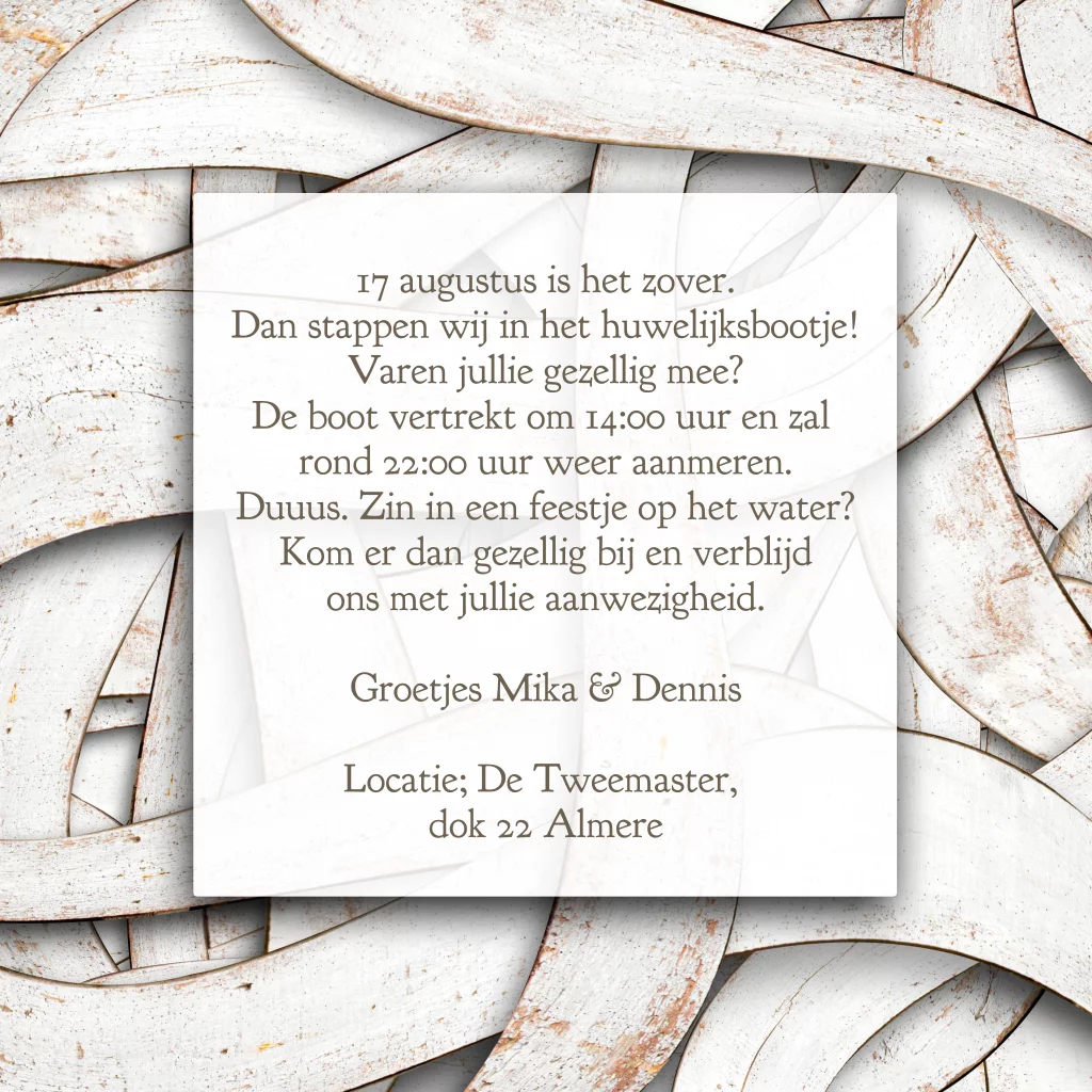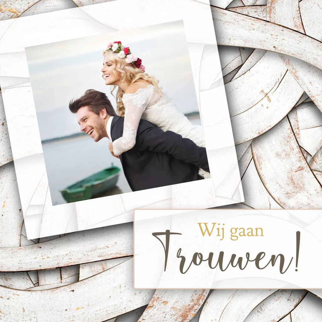 Een frisse trendy kaart met een foto op een gebogen houten achtergrond. Modern en sfeervol! (22373)