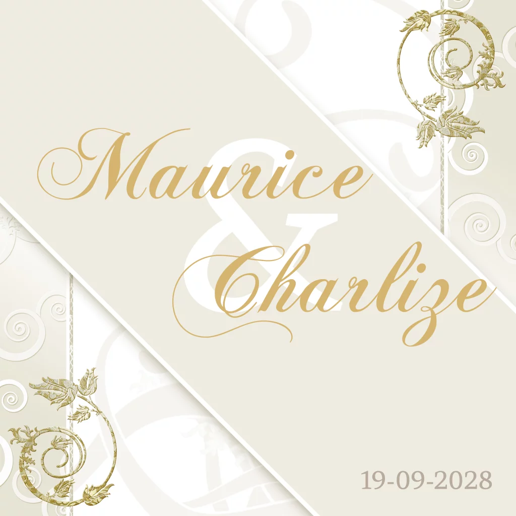 Stijlvolle crème huwelijkskaart met ornamenten. Zilveren versieringen. (660)