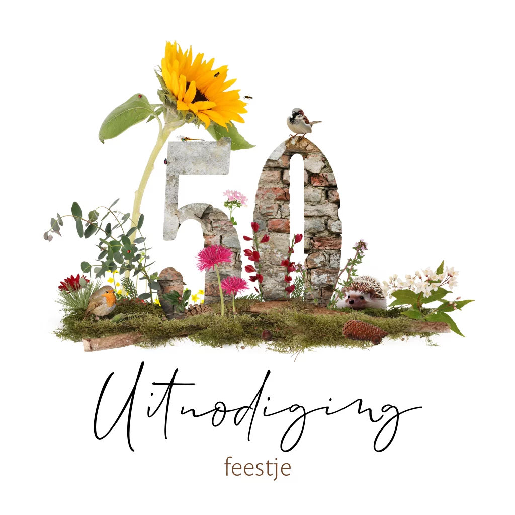 Verjaardag uitnodiging 50 jaar mos natuur bloemen
