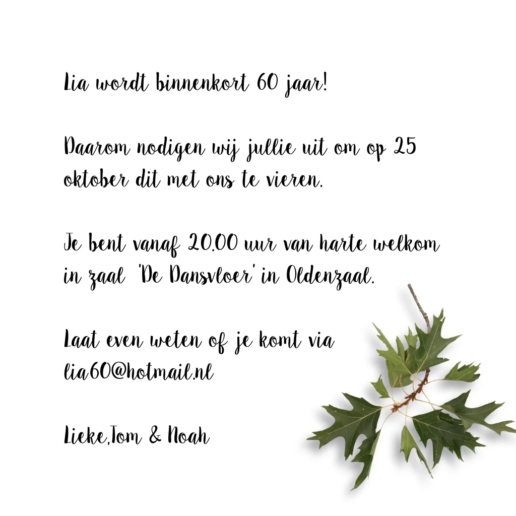 Een mooie uitnodigingskaart met de leeftijd 60 jaar in steen. Rondom een vrolijk natuur tafereel. Uitnodiging 60 jaar (7639)