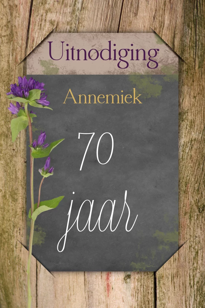 Uitnodiging 70 jaar verjaardagsfeest bord en bloem