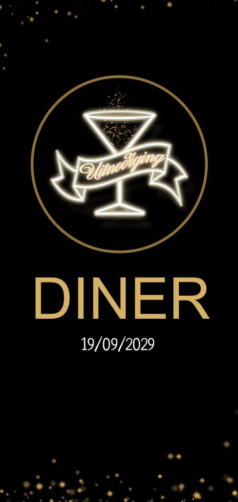 Hippe uitnodiging diner met cocktailglazen en goudkleurige accenten. (5917)