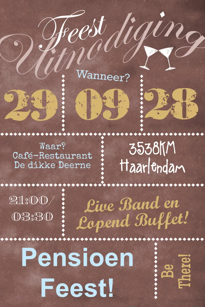 Uitnodiging feestje pensioen typo grafie in lichtbruin
