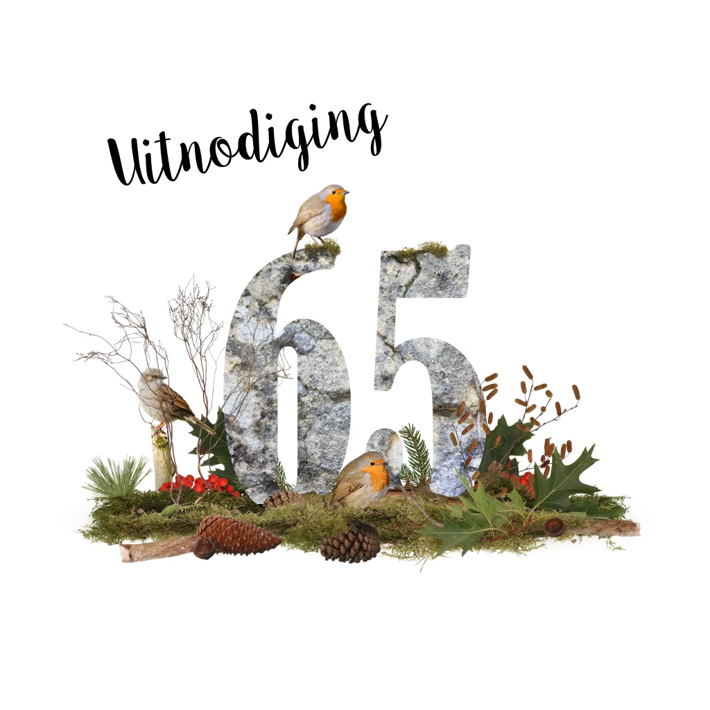 Uitnodiging voor een 65e verjaardag met roodborstjes