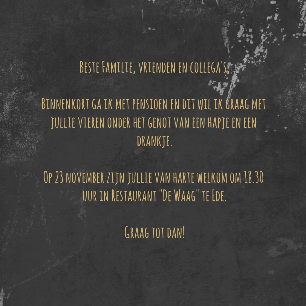 Uitnodigingskaart gevelbord tekst pensioenfeest