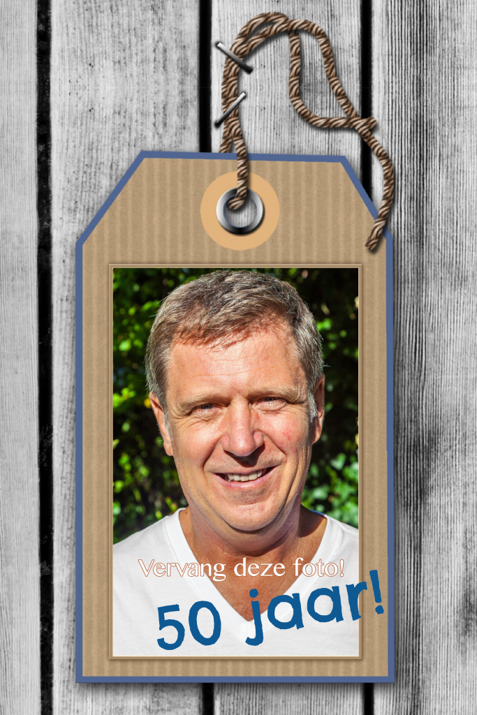 Uitnodigingskaarten verjaardagfeest vrouw of man met houten planken en naamlabel. Binnenzijde hout en wit. (708)