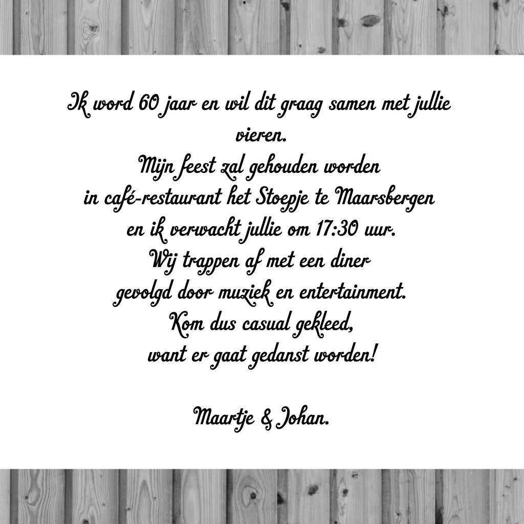 Een feestelijke verjaardagskaart verjaardag 60 jaar met het jaartal 60 en foto aan een touw. Op de achtergrond hout. (6991)