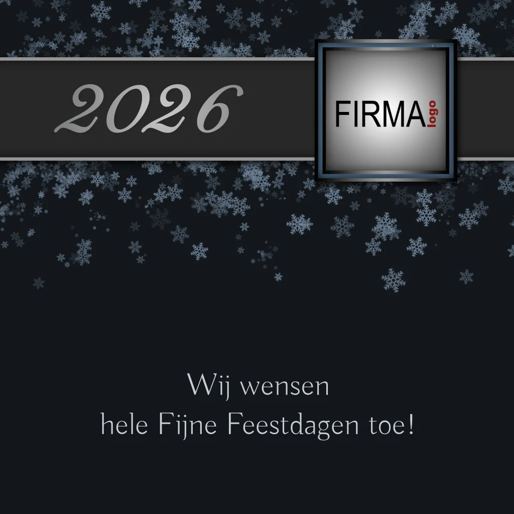 Zakelijke kerstkaart met zwarte achtergrond en in het blauw jaartal. Ruimte voor eigen logo. (970)