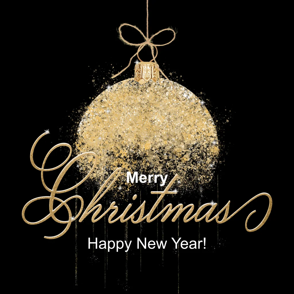 Een sfeervol kerstkaartje met een goud look kerstbal gemaakt van sterrenstof. (24324)