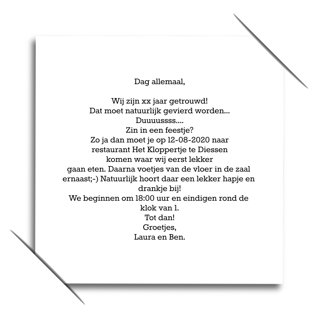 Moderne uitnodiging feest in zwart wit met typografie en foto. Zowel de teksten als de achtergrond is qua kleur naar wens zelf aan te passen. (4424)