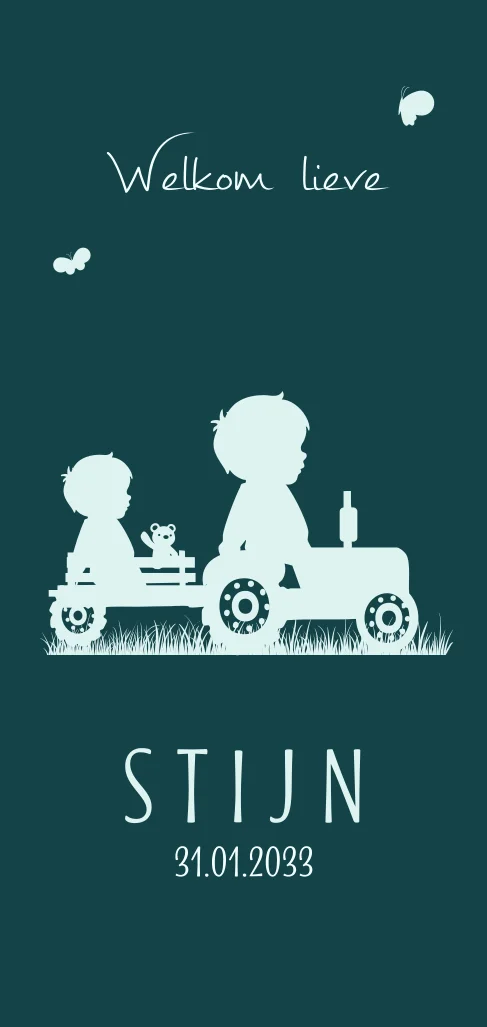 Geboortekaartje 2e kindje jongen met grote broer en traktor