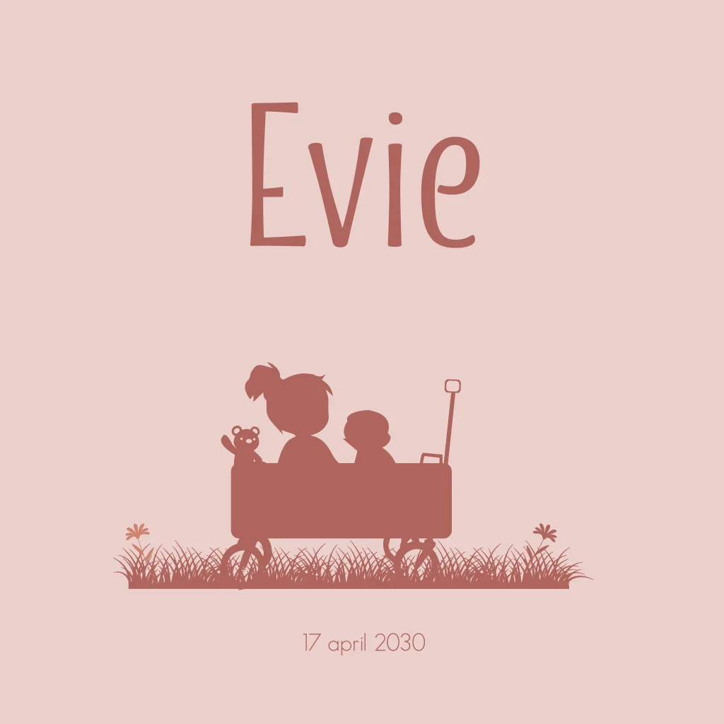 Silhouet geboortekaartje 2e kindje meisje bolderkar