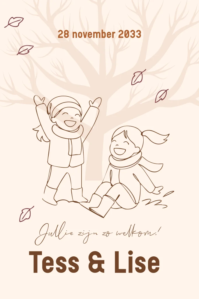 Geboortekaartje meisjes tweeling herfst winter met silhouet