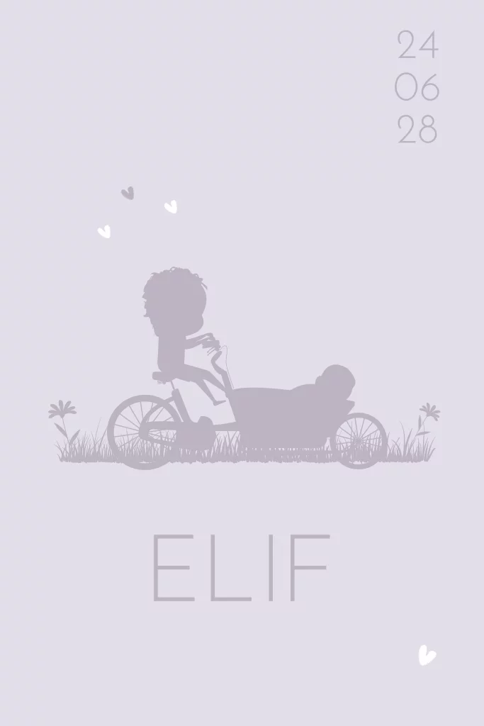 Tweede kindje geboortekaartje meisje met grote broer en bakfiets