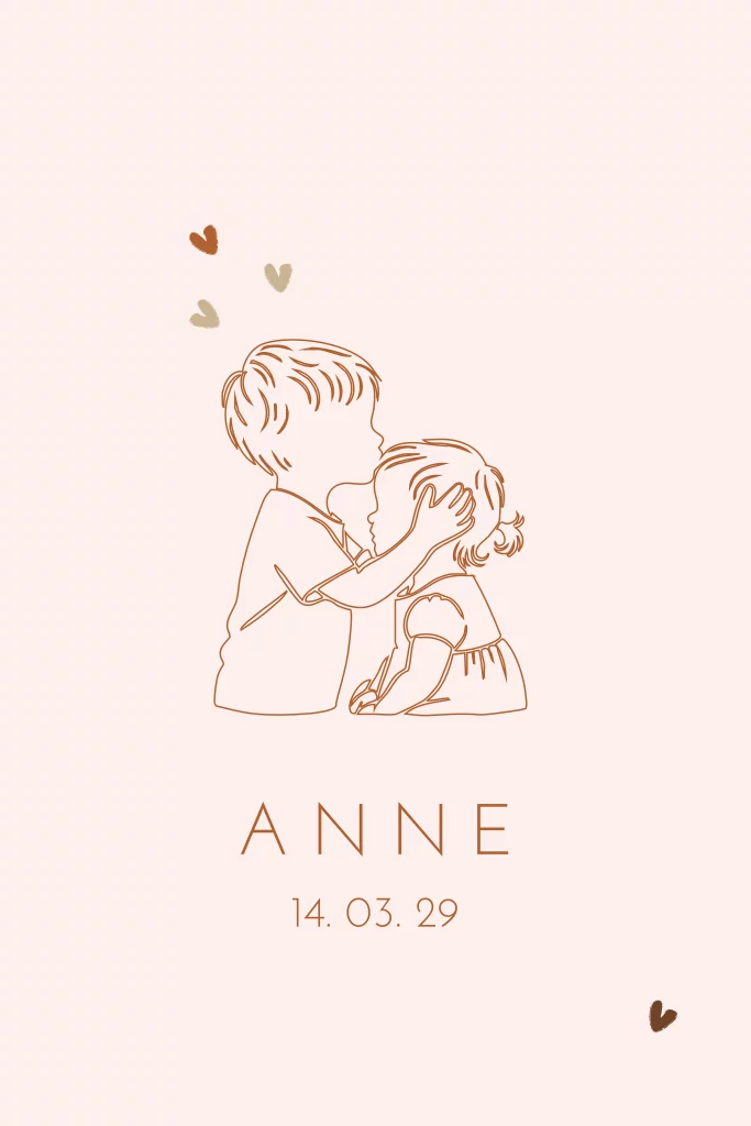 Geboortekaartje 2e kindje grote broer knuffelen met zusje