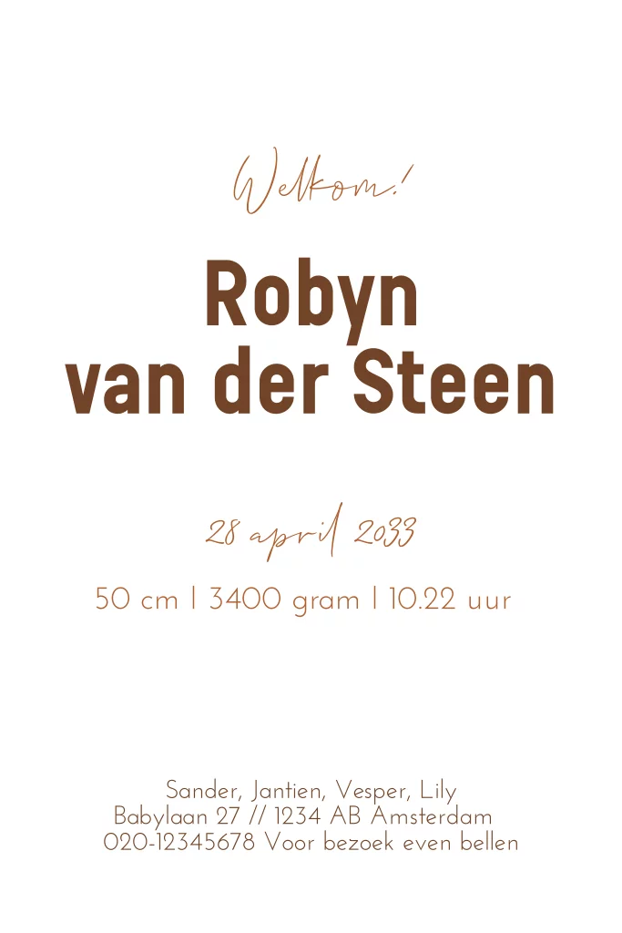 Lief geboortekaartje unisex voor een 3e kindje een meisje met 2 grote broers. (30090)