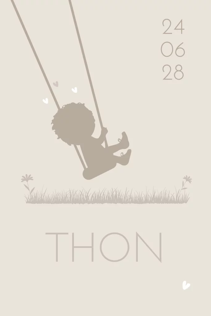 Geboortekaartje schommel met een silhouet van een jongetje op een schommel. (23944)