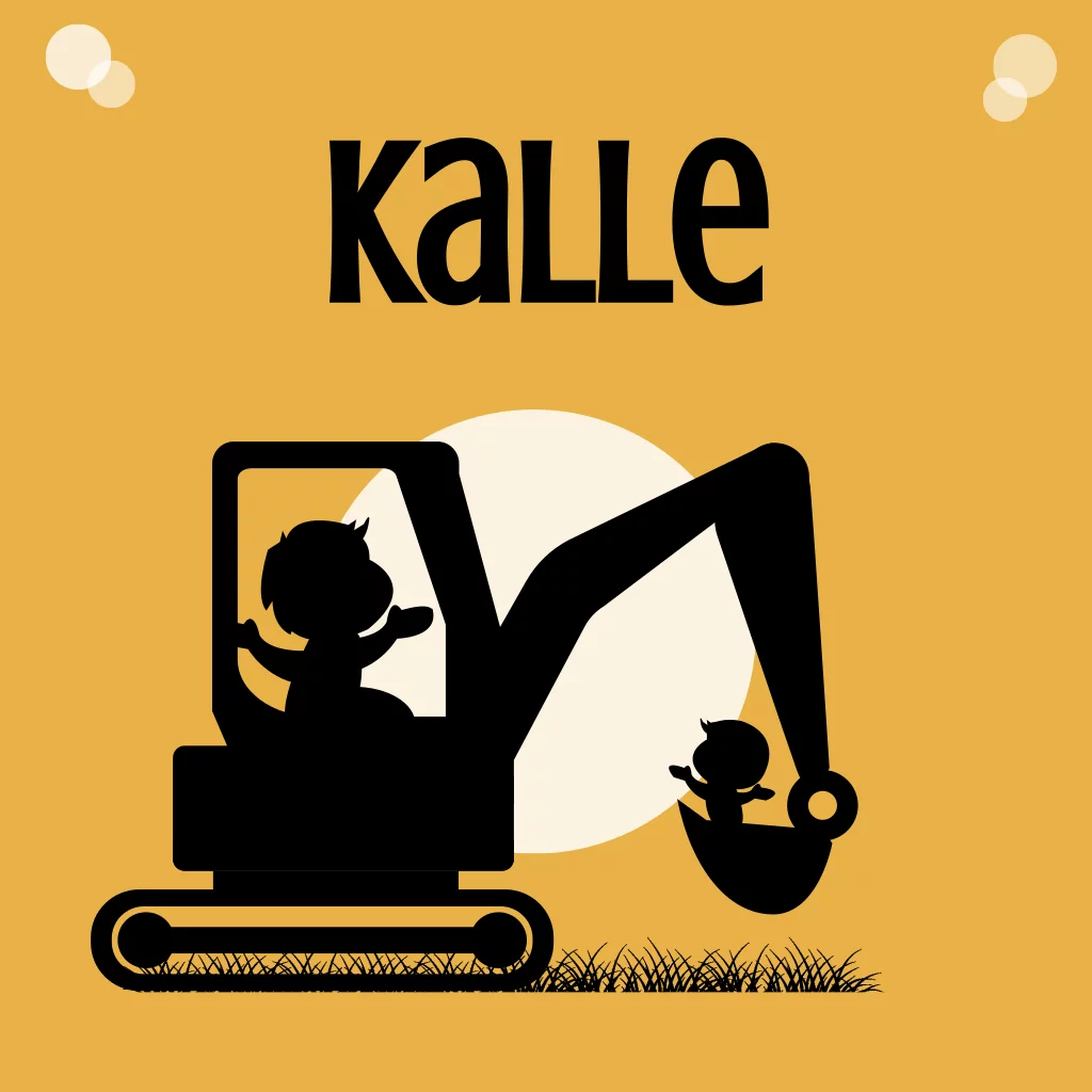 Stoer geboortekaartje voor een jongetje 2e kindje Met een silhouet van een grote broer die zijn kleine broertje met de graafmachine tilt. (21794)