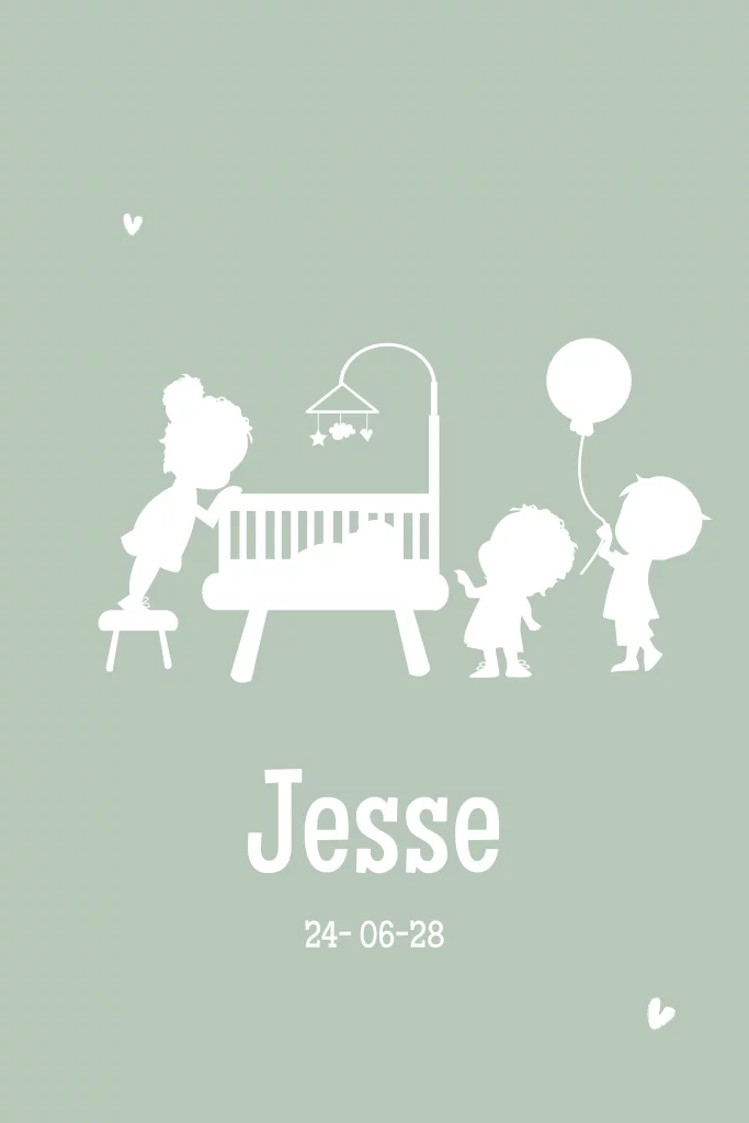 Geboortekaartje jongen 4e kindje zus broer wiegje silhouet