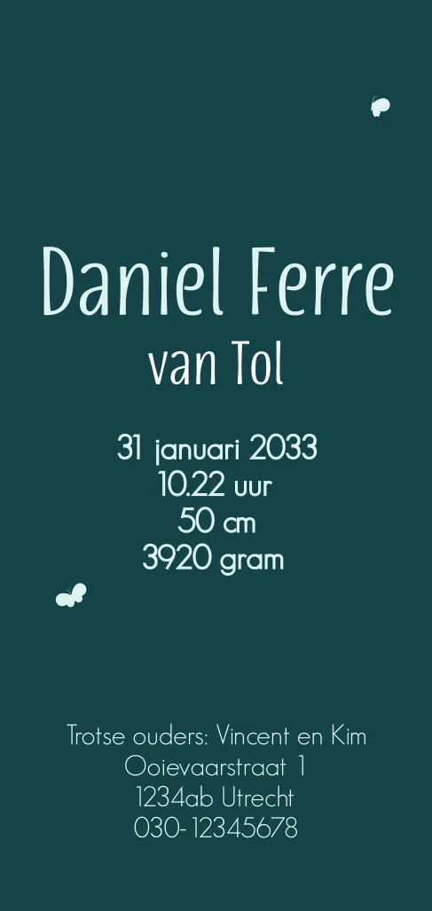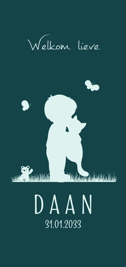 Geboortekaartje jongetje met een silhouet van een kindje en een kat