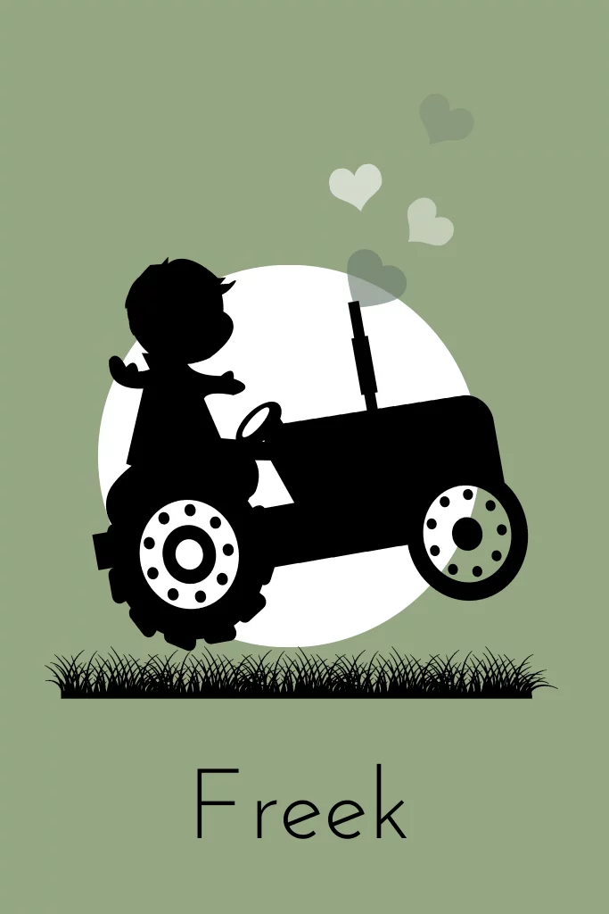 Met een silhouet van een jongetje in een traktor. (20349)
