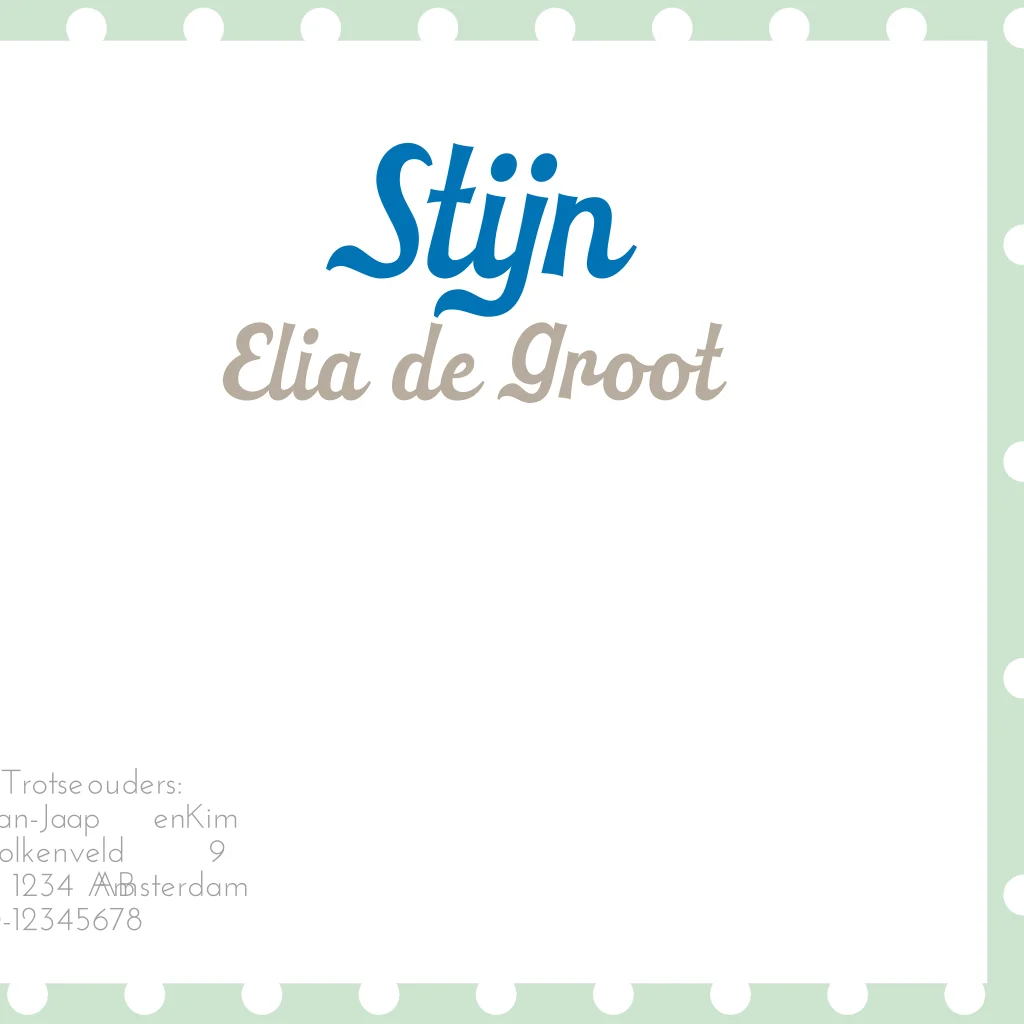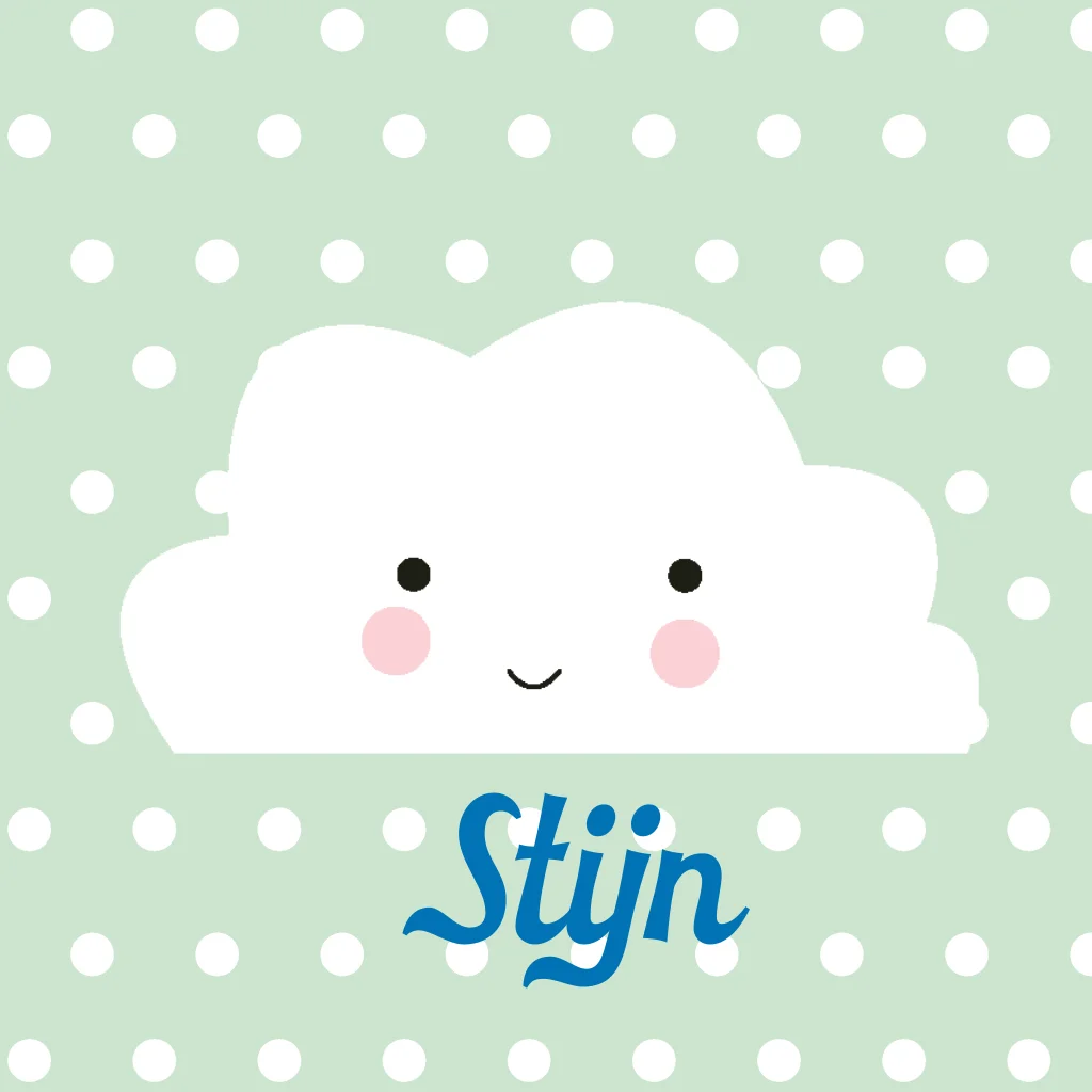 Getekend geboortekaartje jongen met wolkje mint