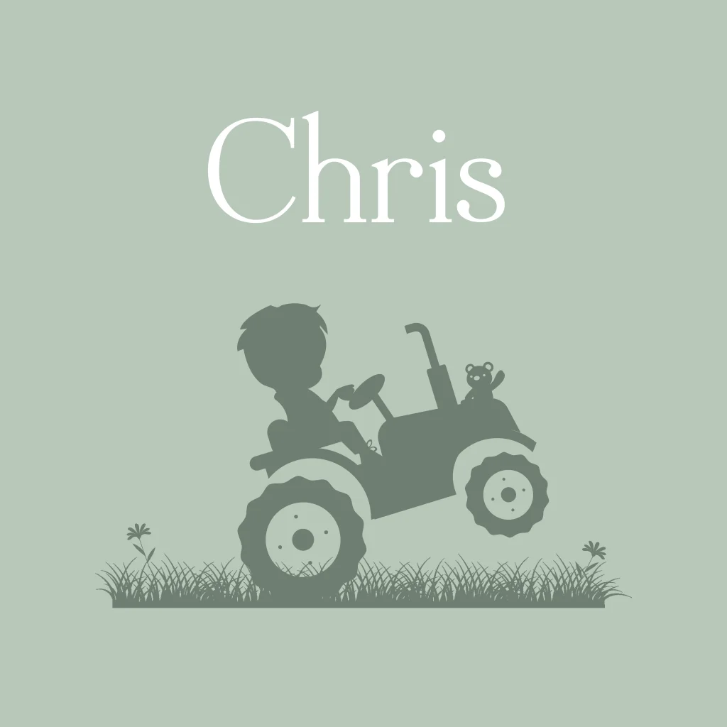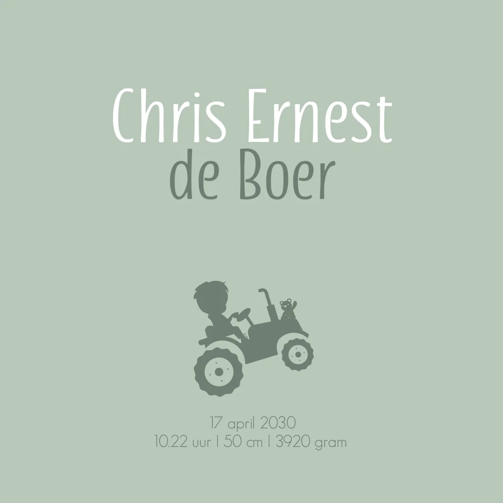 Geboortekaartje met een silhouet van een jongen op tractor