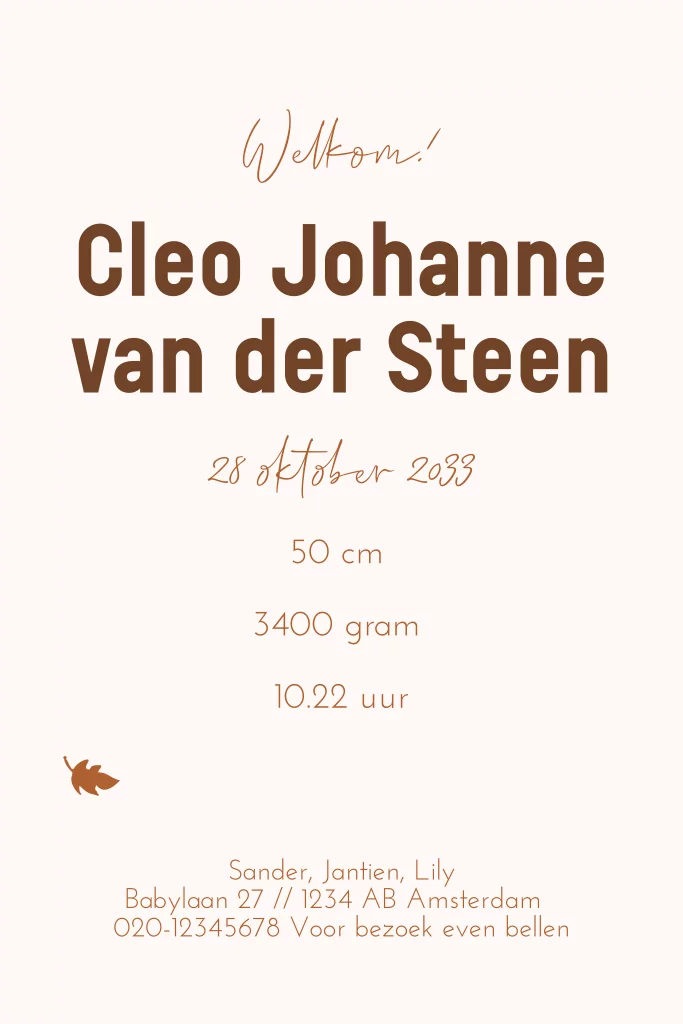 Een lief geboortekaartje met herfstbladeren. Voor een meisje die met haar grote zus met herfstbladeren speelt. (30106)