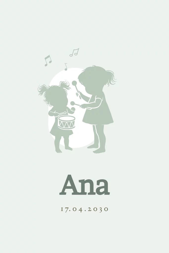 Geboortekaartje 2e kindje meisje trommel silhouet zusjes muziek