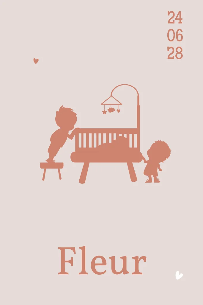 3e kindje geboortekaartje meisje grote broers silhouet wieg