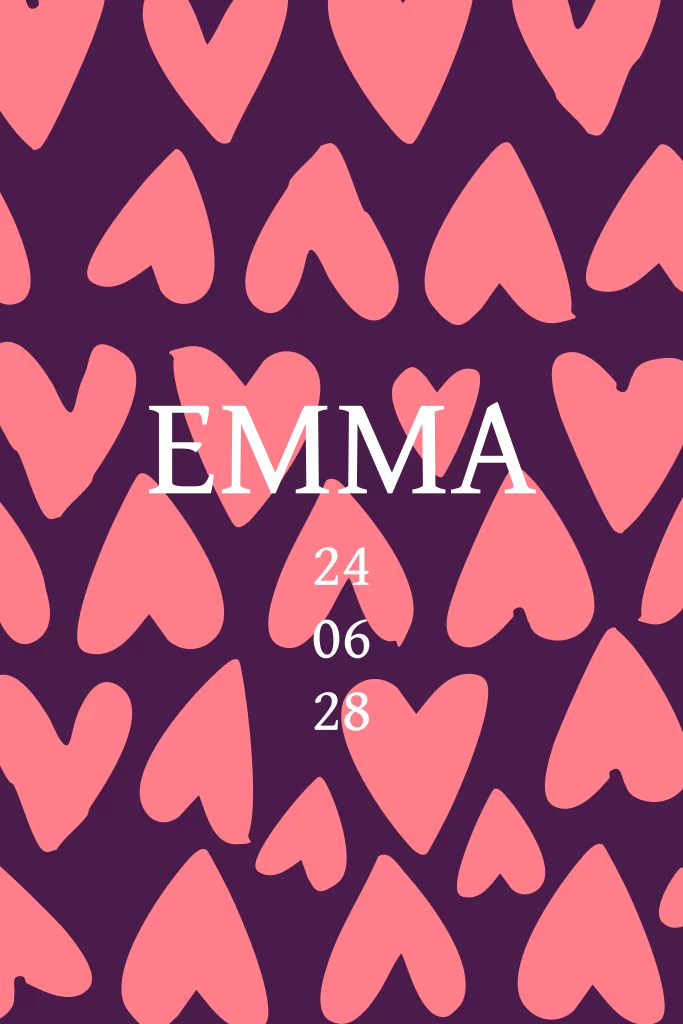 Geboortekaartje meisje modern met hartjes patroon in roze op een paarse achtergrond. (24571)