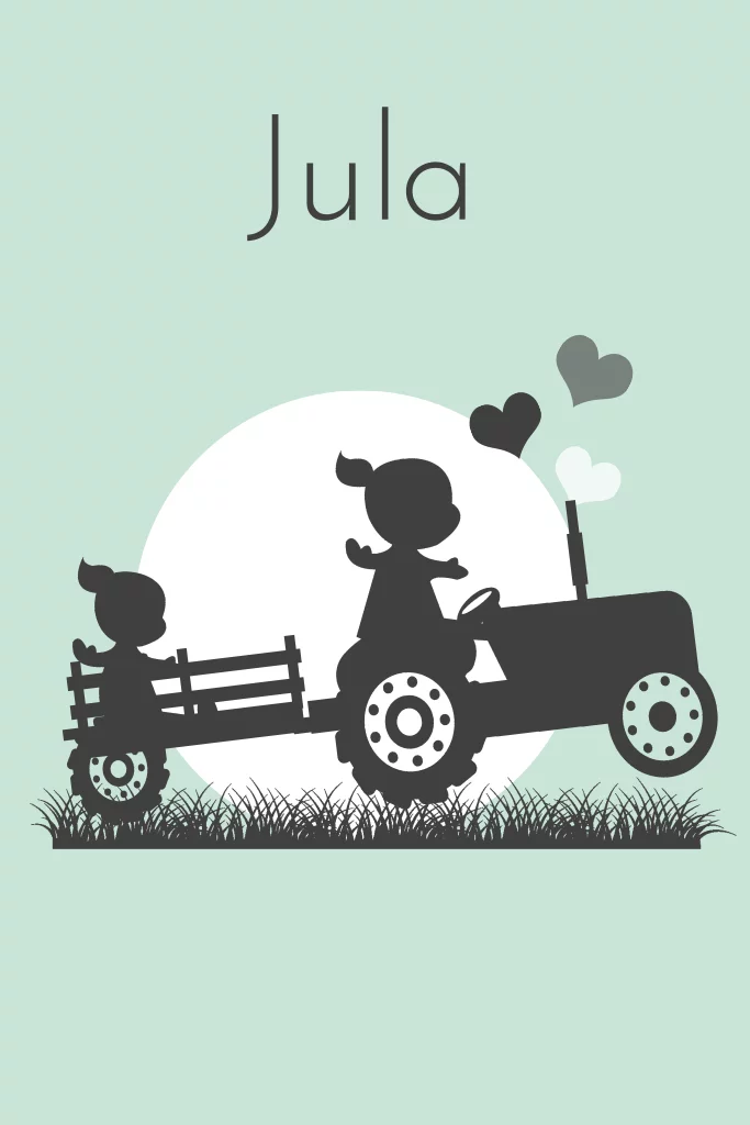 Geboortekaartje meisje silhouet grote zus tractor 2e kindje