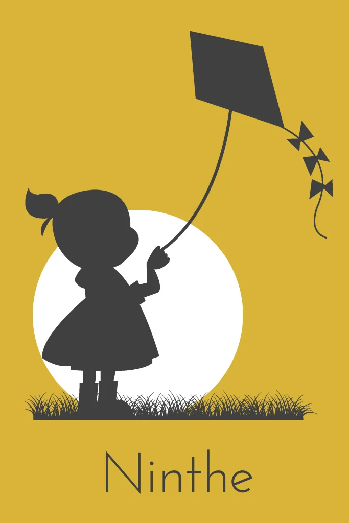 Leuk geboortekaartje voor een meisje met een silhouette van een meisje dat aan het vliegeren is. Aan de binnenkant van deze kaart iconen voor de geboortegegevens. Achtergrondkleur is naar wens aan te passen. (20322)