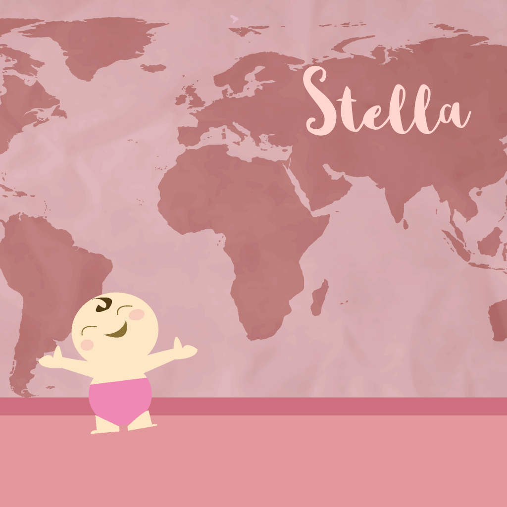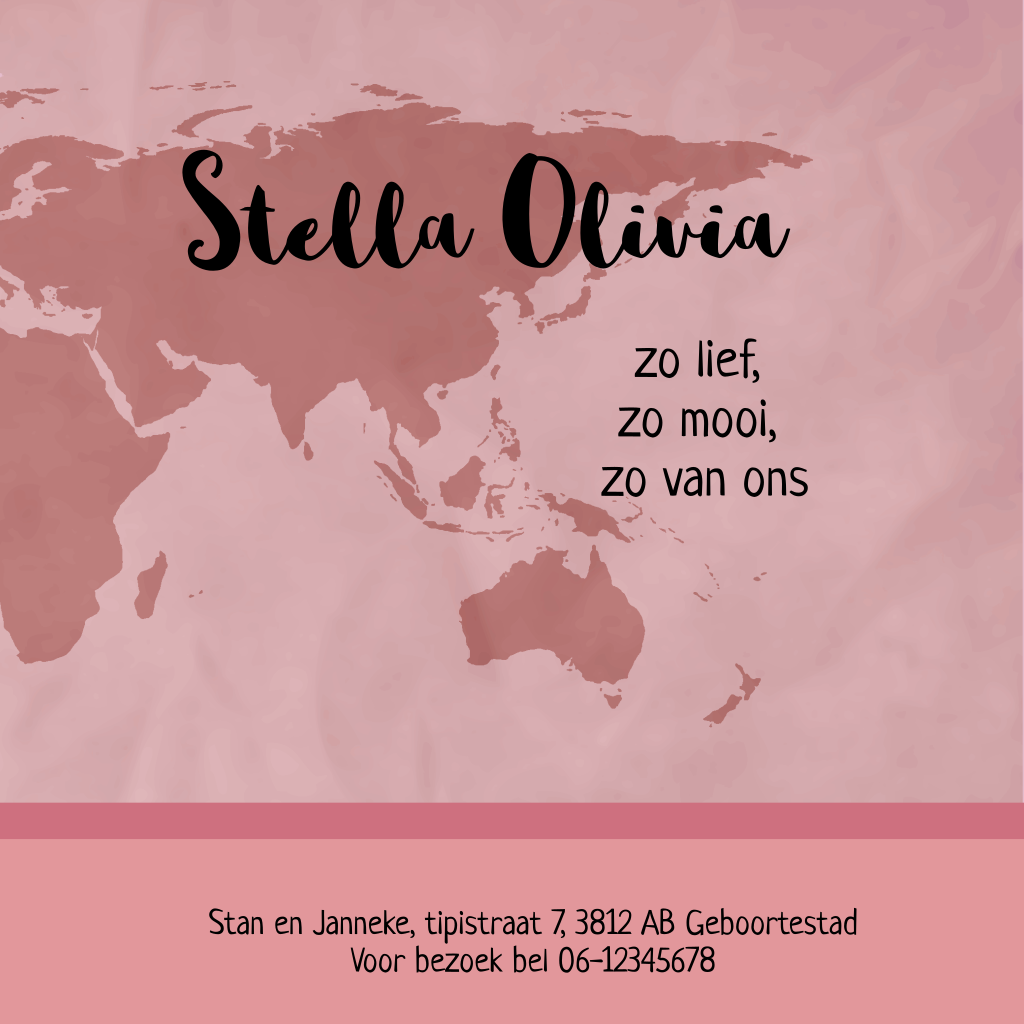 Geboortekaartje met wereldkaart voor een meisje