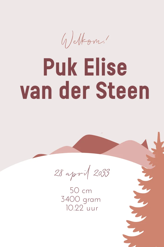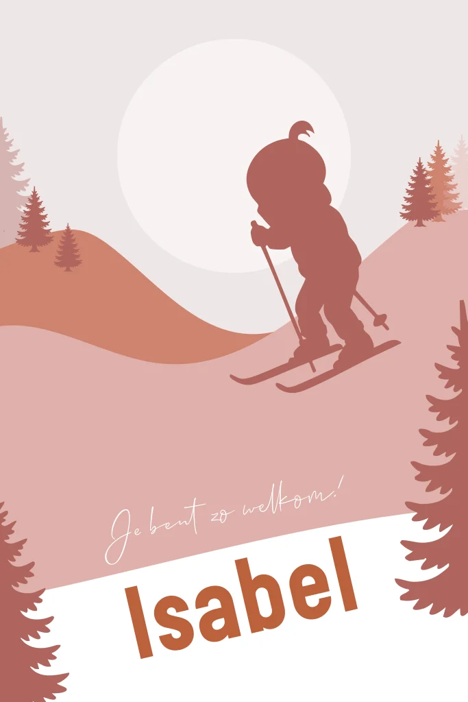 Geboortekaartje meisje winter wintersport skiën silhouet