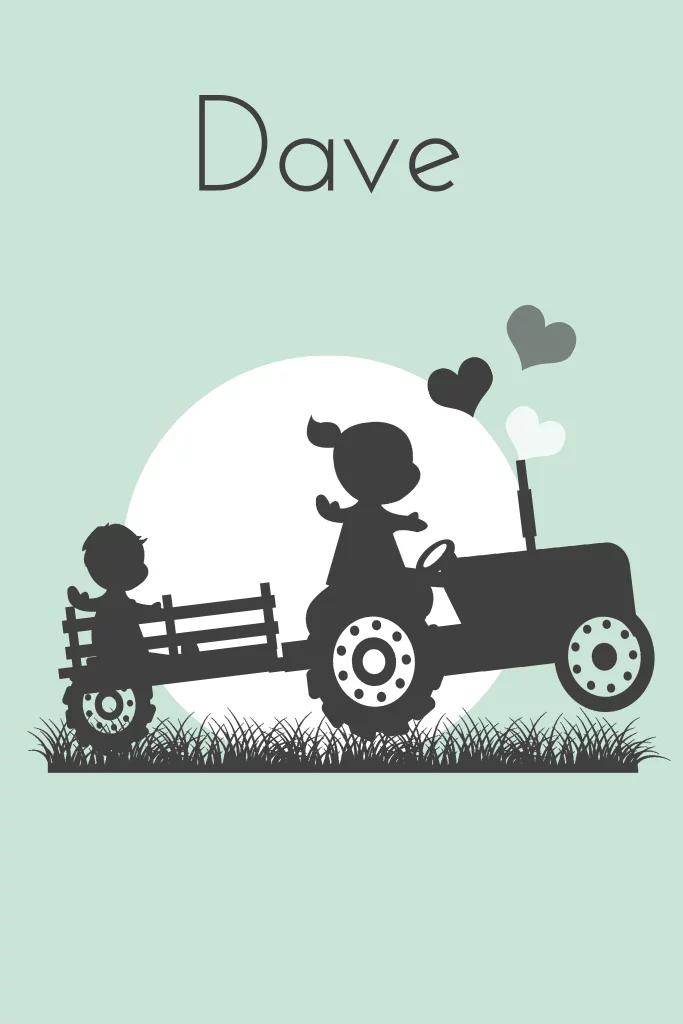 Lief geboortekaartje voor een jongetje met een grote zus. Kaart is met silhouette van een grote zus, met haar broertje achterop een tractor. Tweede kindje. (20512)