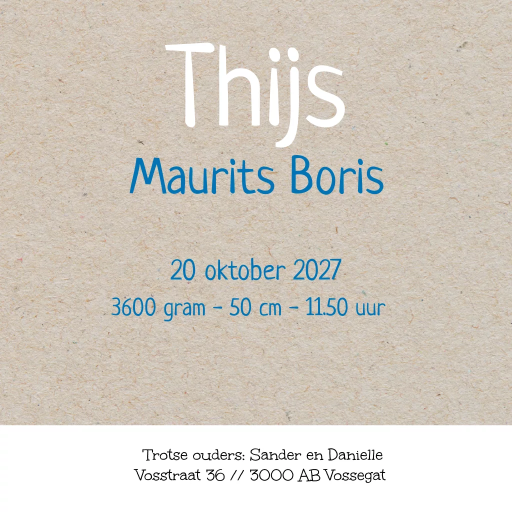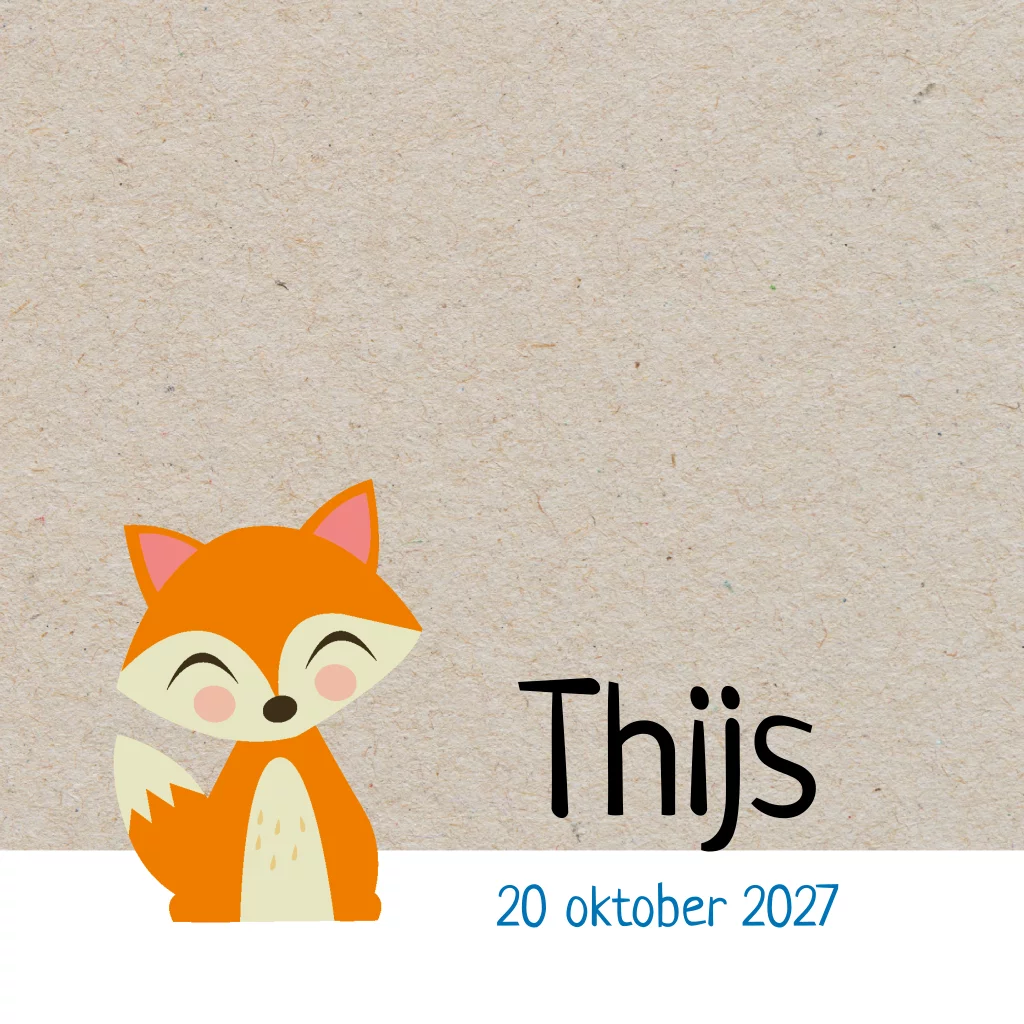Vrolijk kraft geboortekaartje voor een jongen in herfst winter periode. getekende Oranje vosje voor een karton achtergrond. (5899)