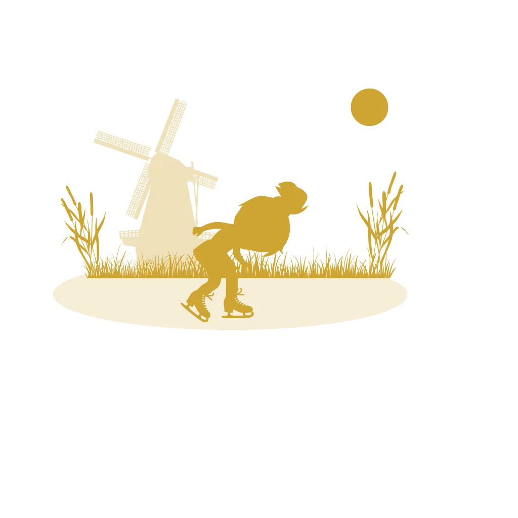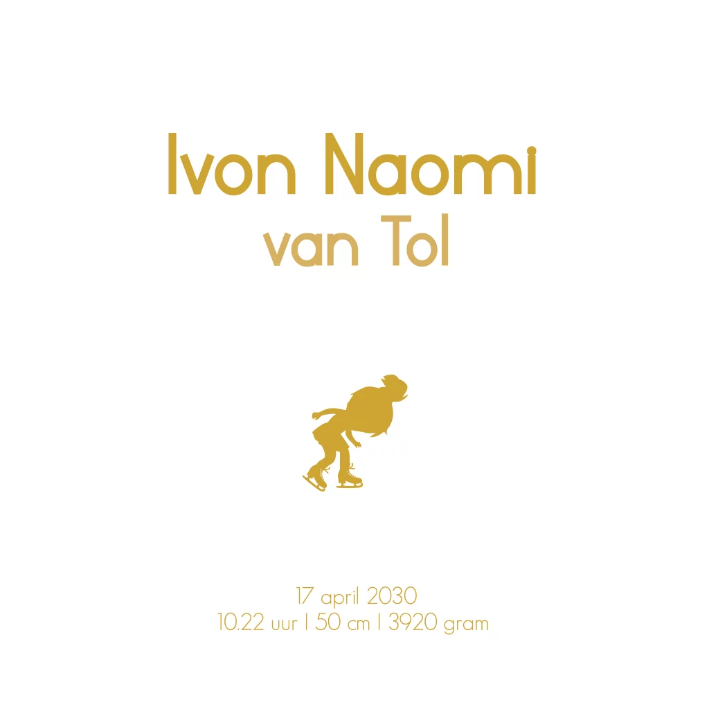Hollands geboortekaartje met een meisje dat in de polder aan het schaatsen is. (24622)