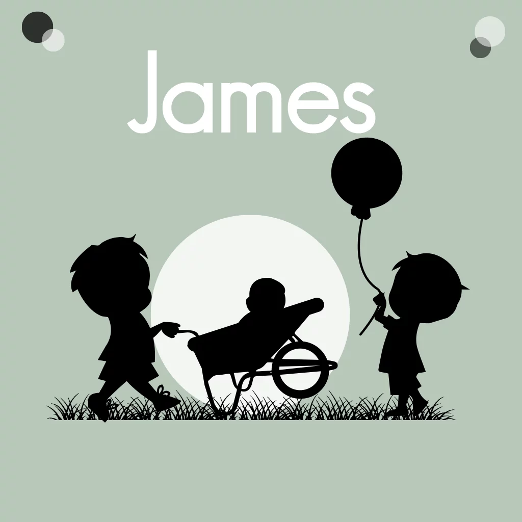 Geboortekaartje voor een 3e kindje met een grote broer die zijn kleine broertje voortduwt in de kruiwagen, daarnaast nog een broertje (23449)