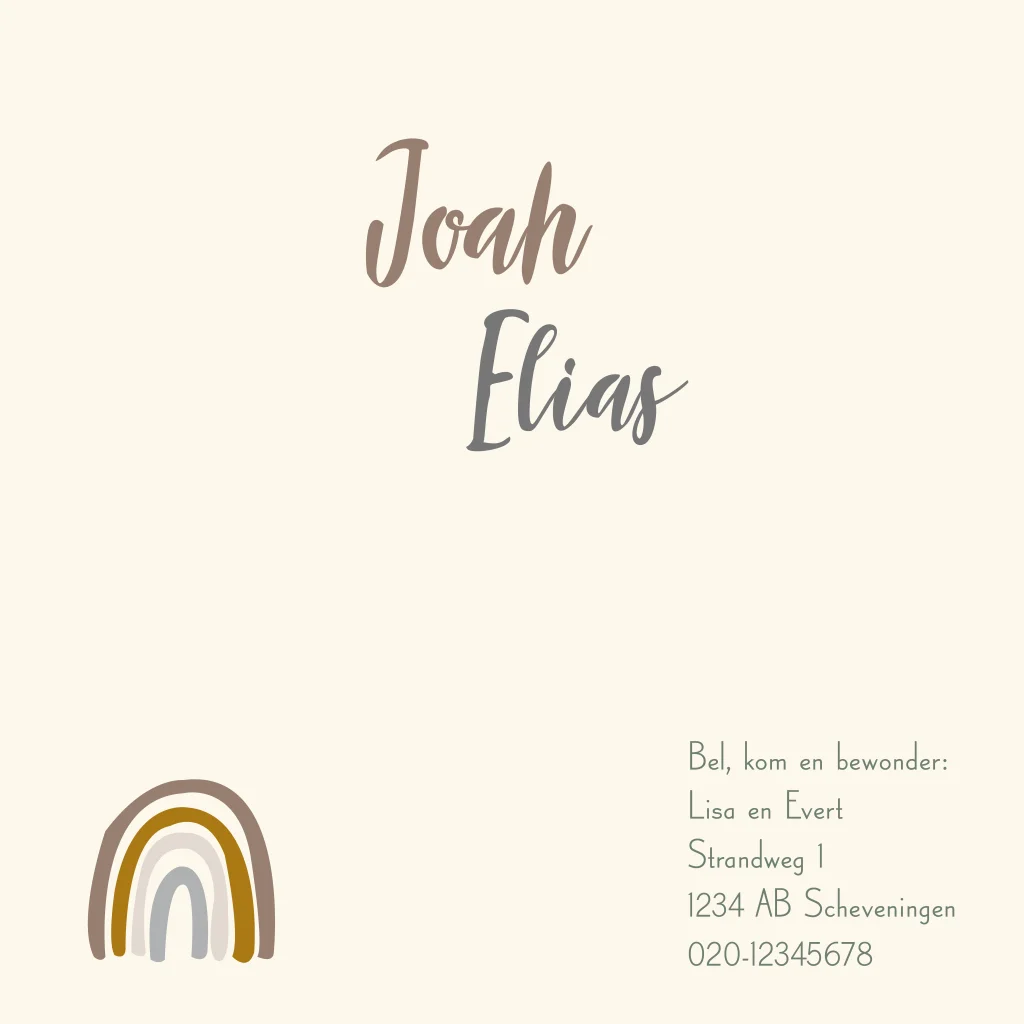 Geboortekaartje regenboog jongen meisje