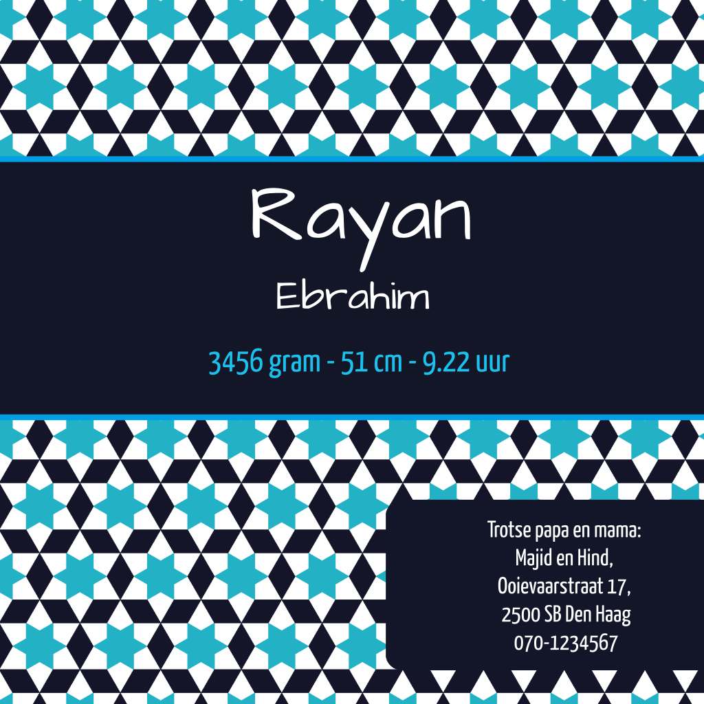 Hip marokkaans geboortekaartje jongen arabische tegeltjes