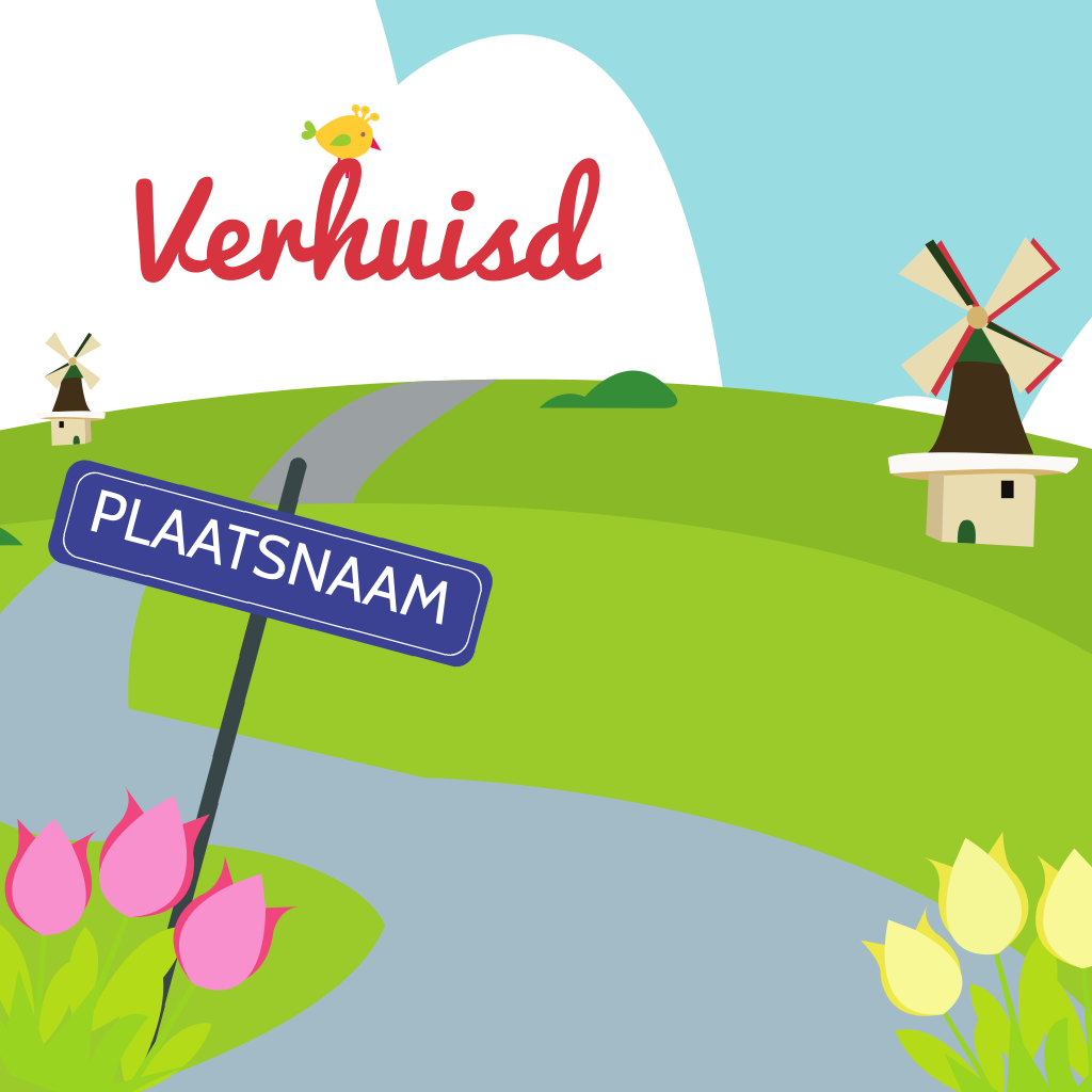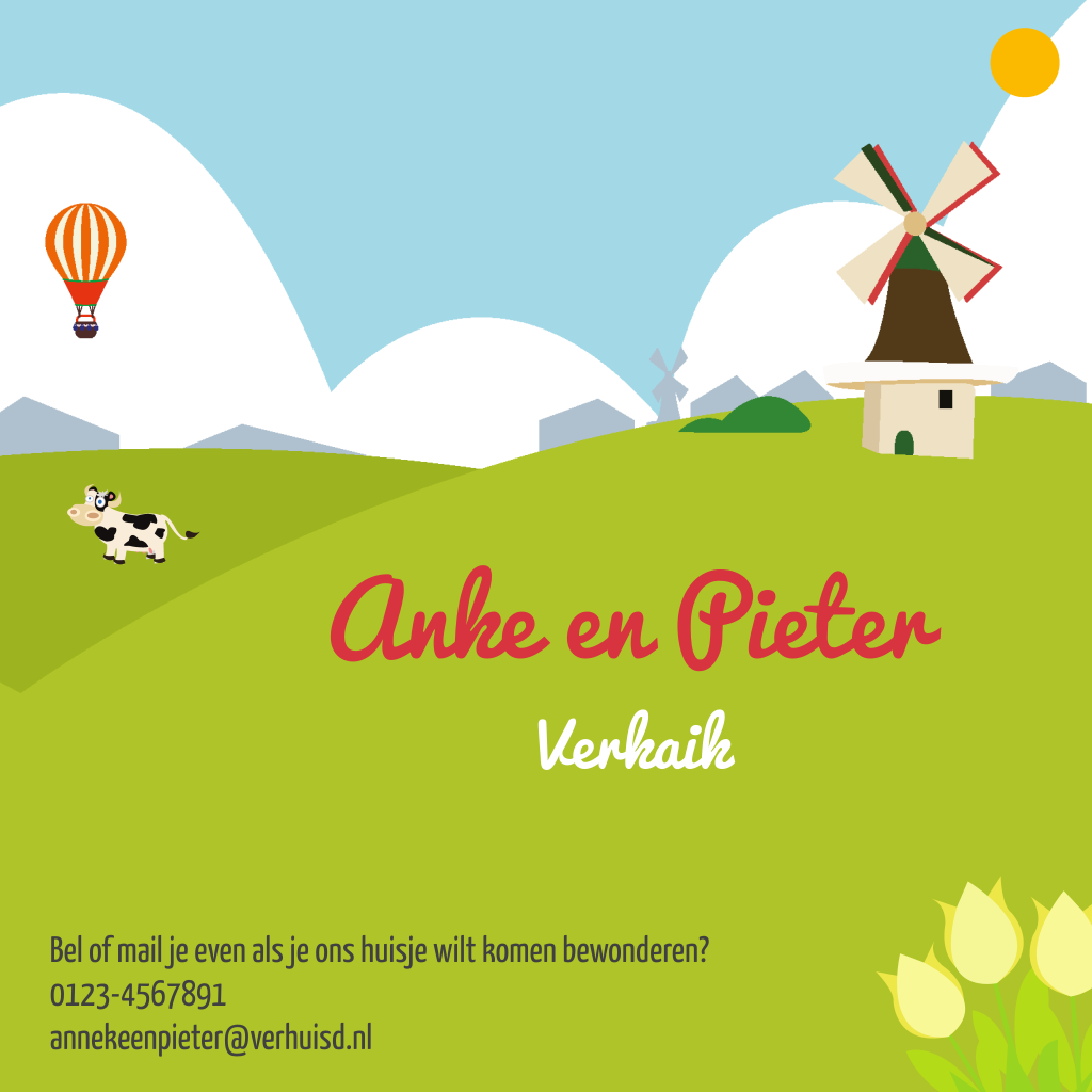 Hollandse verhuiskaart platteland boerderij met koeien en molen. Verhuizen naar een dorp! (2315)
