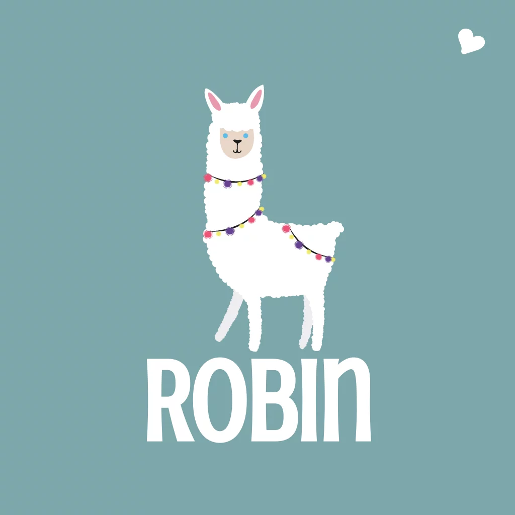 Hip geboortekaartje voor een jongen met een alpaca erop. Dé trend van nu! (9853) Geboortekaartje Alpaca.