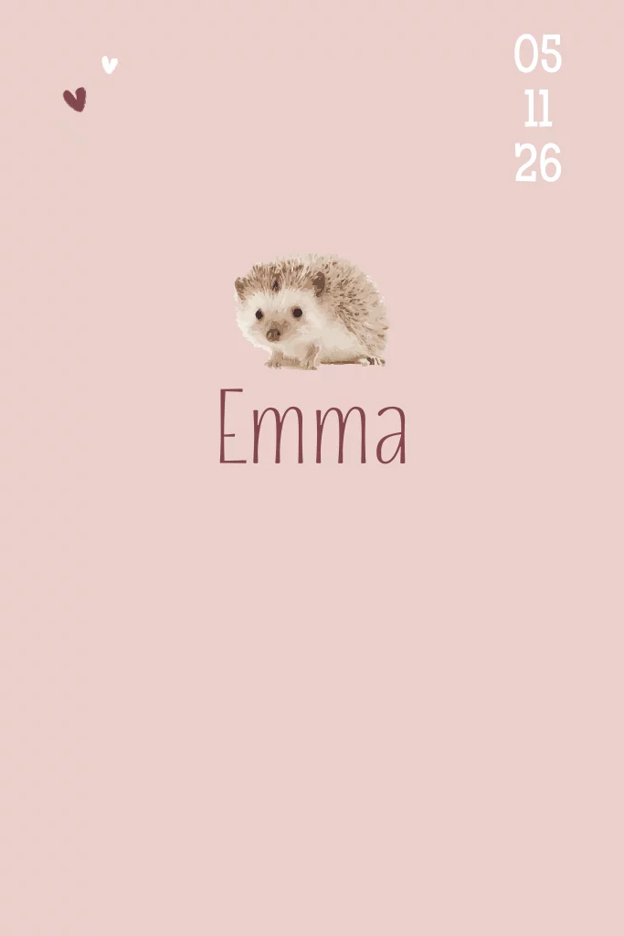 Lief geboortekaartje egel met een realistisch getekende egel. (23480)