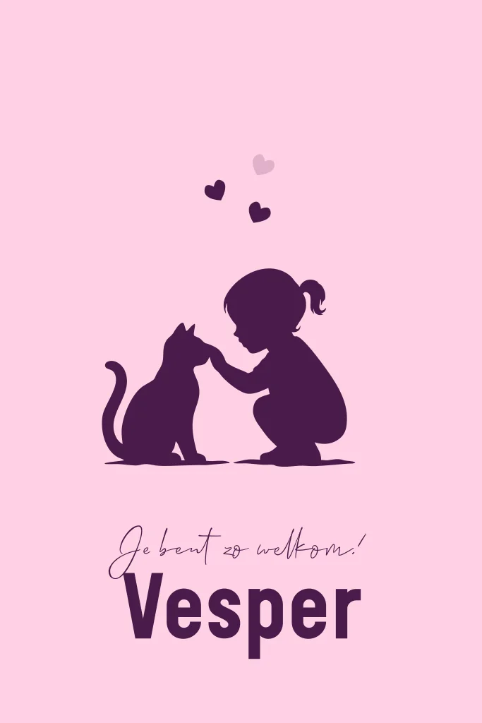 Meisjes geboortekaartje meisje met een poes silhouet tekening
