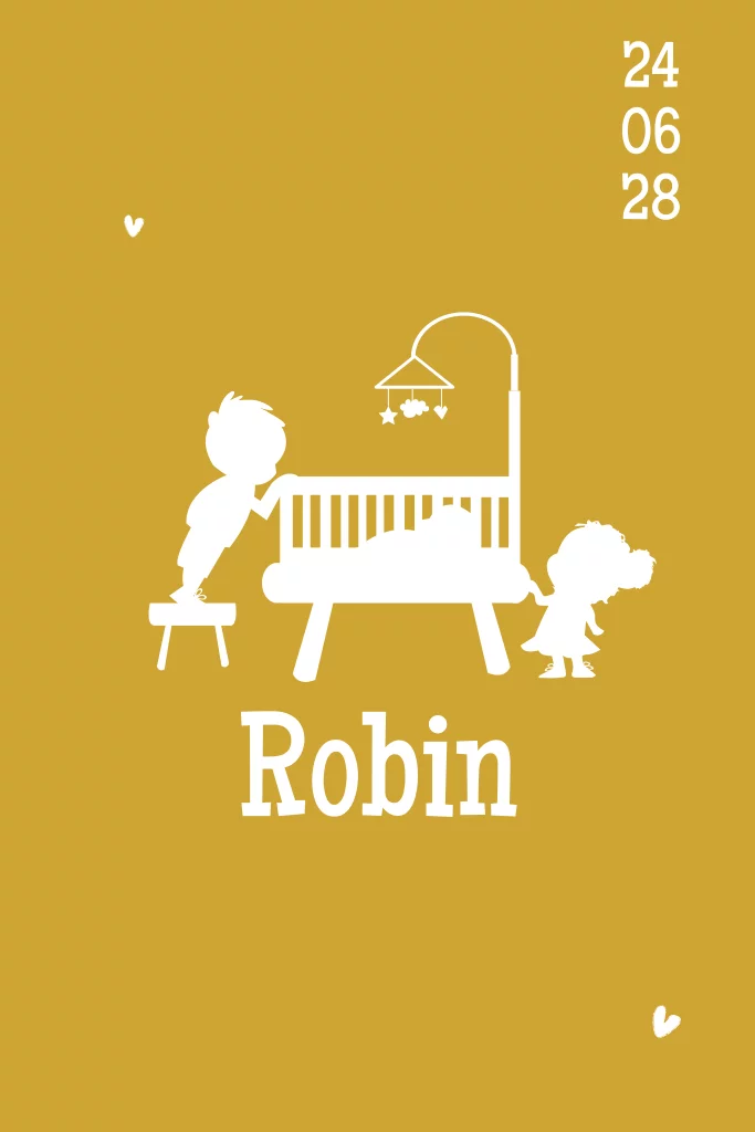 Unisex silhouet geboortekaartje 3e kindje grote broer en zus