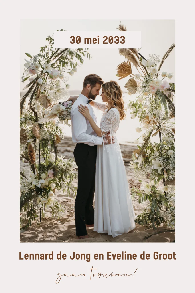 Save the date in bohemian stijl met ruimte voor een eigen foto