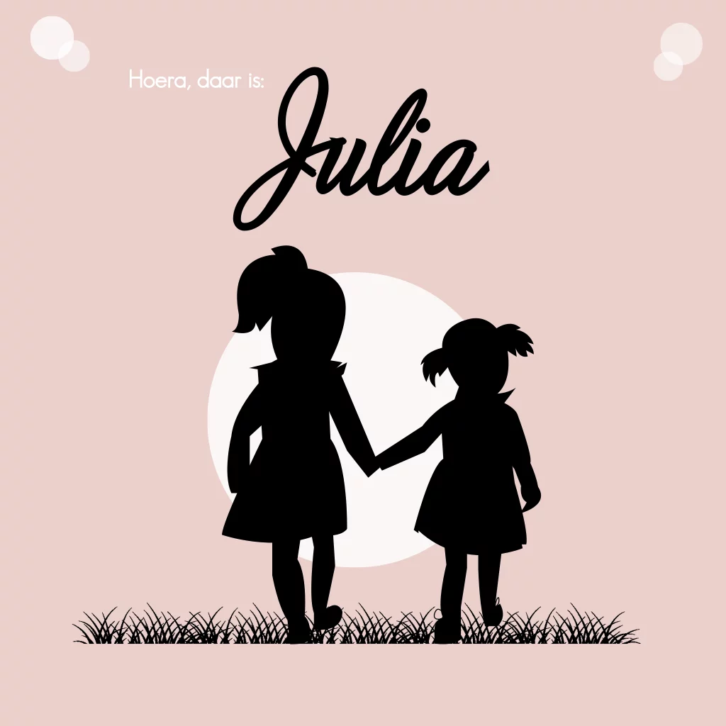2e kindje geboortekaartje met een silhouette van twee zussen die hand in hand lopen. (21180)