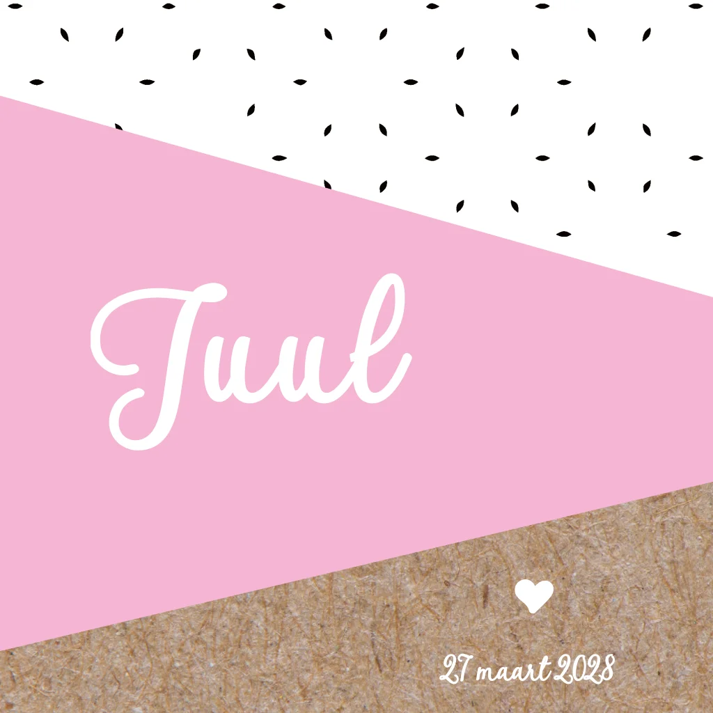 Geometrisch geboortekaartje meisje met kraftpapier kartonlook karton en vlakken. (9814)